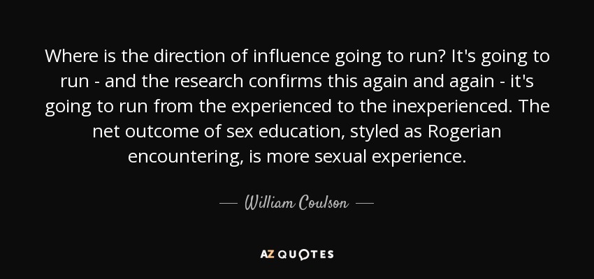 Where is the direction of influence going to run? It's going to run - and the research confirms this again and again - it's going to run from the experienced to the inexperienced. The net outcome of sex education, styled as Rogerian encountering, is more sexual experience.