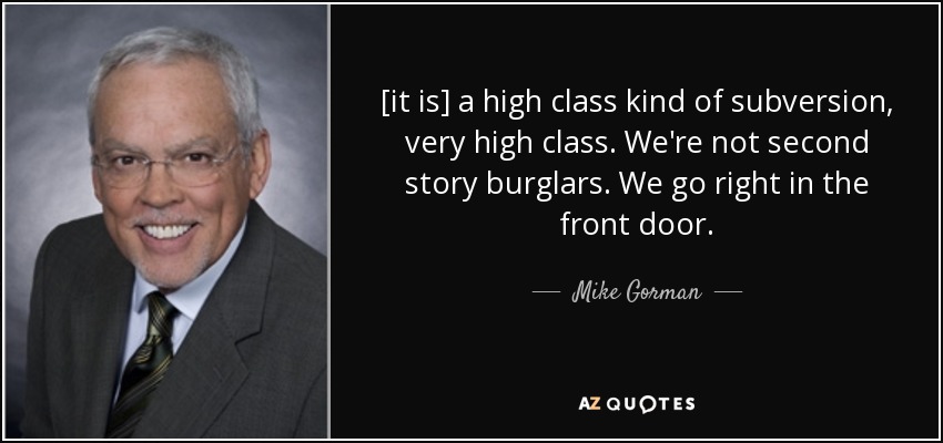 [it is] a high class kind of subversion, very high class. We're not second story burglars. We go right in the front door.