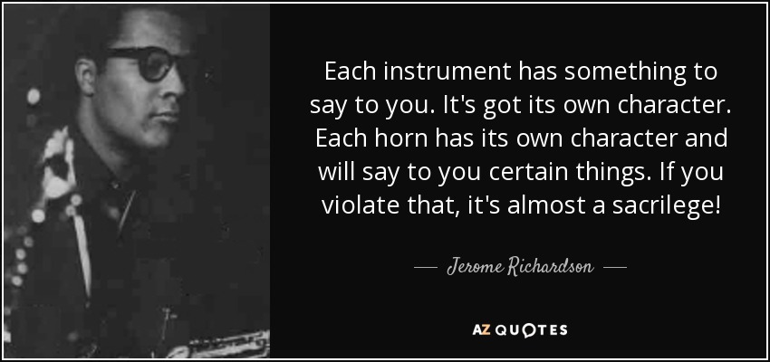 Each instrument has something to say to you. It's got its own character. Each horn has its own character and will say to you certain things. If you violate that, it's almost a sacrilege!