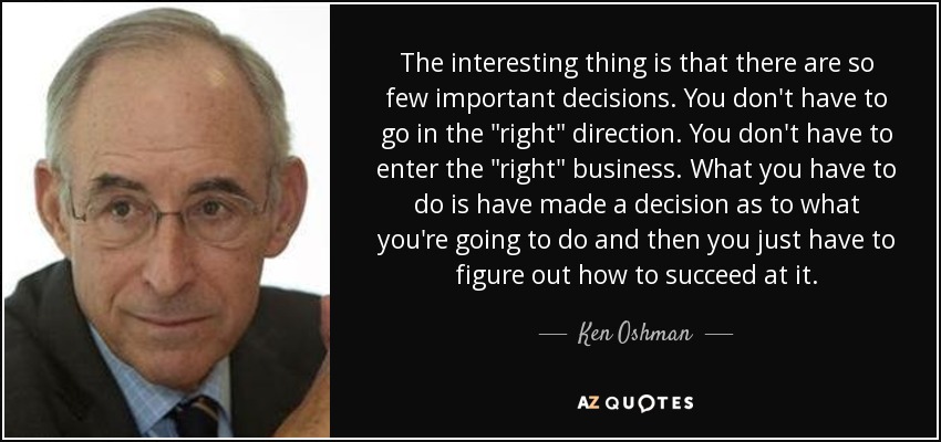 The interesting thing is that there are so few important decisions. You don't have to go in the "right" direction. You don't have to enter the "right" business. What you have to do is have made a decision as to what you're going to do and then you just have to figure out how to succeed at it.
