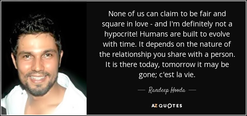 None of us can claim to be fair and square in love - and I'm definitely not a hypocrite! Humans are built to evolve with time. It depends on the nature of the relationship you share with a person. It is there today, tomorrow it may be gone; c'est la vie.