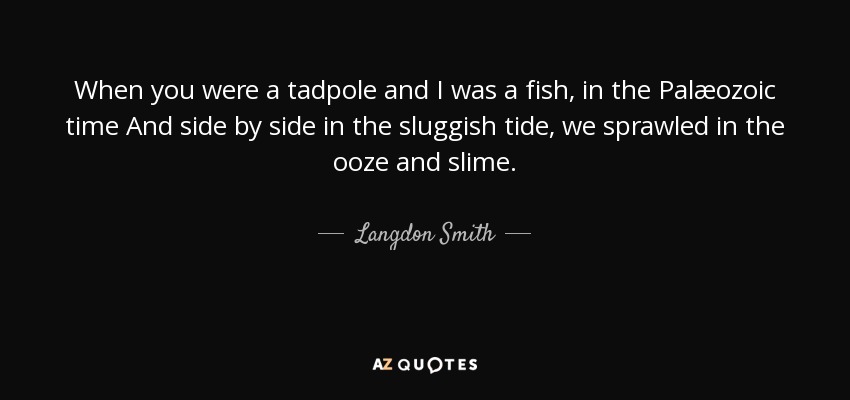 When you were a tadpole and I was a fish, in the Palæozoic time And side by side in the sluggish tide, we sprawled in the ooze and slime.