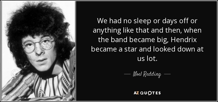 We had no sleep or days off or anything like that and then, when the band became big, Hendrix became a star and looked down at us lot.