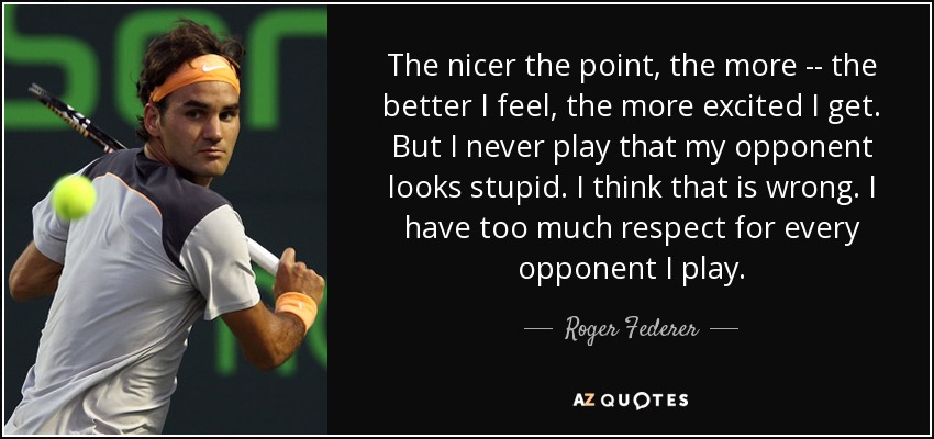 The nicer the point, the more -- the better I feel, the more excited I get. But I never play that my opponent looks stupid. I think that is wrong. I have too much respect for every opponent I play.