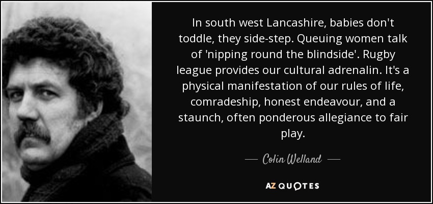 In south west Lancashire, babies don't toddle, they side-step. Queuing women talk of 'nipping round the blindside'. Rugby league provides our cultural adrenalin. It's a physical manifestation of our rules of life, comradeship, honest endeavour, and a staunch, often ponderous allegiance to fair play.