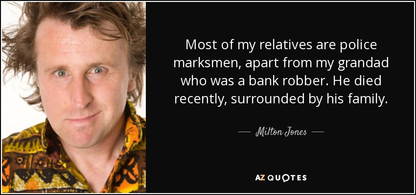 Most of my relatives are police marksmen, apart from my grandad who was a bank robber. He died recently, surrounded by his family.