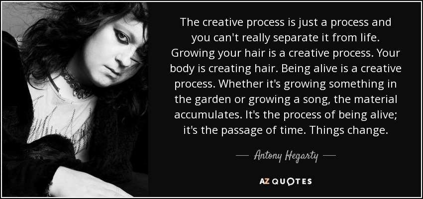 The creative process is just a process and you can't really separate it from life. Growing your hair is a creative process. Your body is creating hair. Being alive is a creative process. Whether it's growing something in the garden or growing a song, the material accumulates. It's the process of being alive; it's the passage of time. Things change.