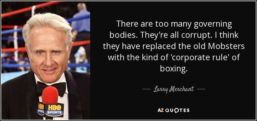 There are too many governing bodies. They're all corrupt. I think they have replaced the old Mobsters with the kind of 'corporate rule' of boxing.