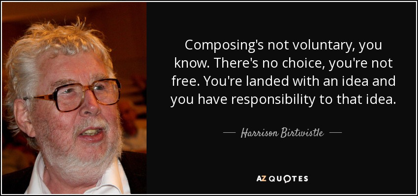 Composing's not voluntary, you know. There's no choice, you're not free. You're landed with an idea and you have responsibility to that idea.