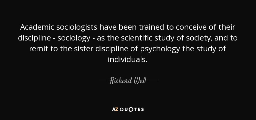 Academic sociologists have been trained to conceive of their discipline - sociology - as the scientific study of society, and to remit to the sister discipline of psychology the study of individuals.