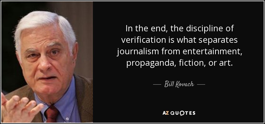 In the end, the discipline of verification is what separates journalism from entertainment, propaganda, fiction, or art.