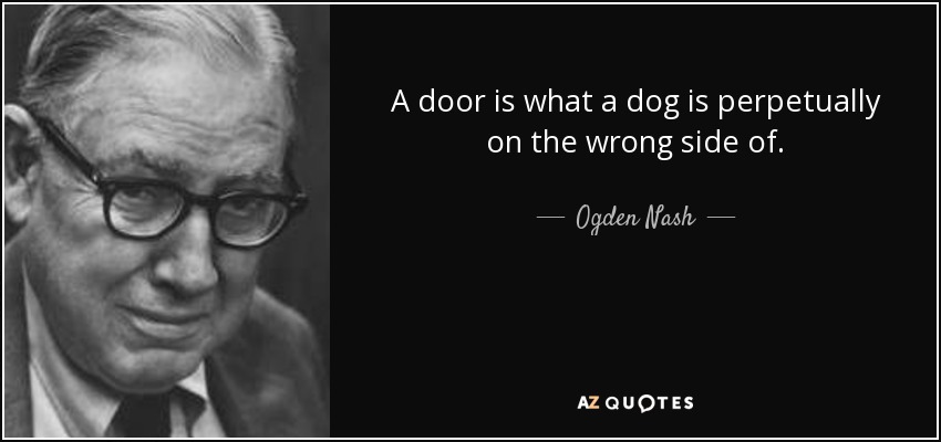 A door is what a dog is perpetually on the wrong side of.