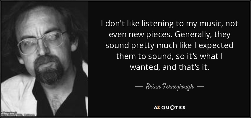 I don't like listening to my music, not even new pieces. Generally, they sound pretty much like I expected them to sound, so it's what I wanted, and that's it.
