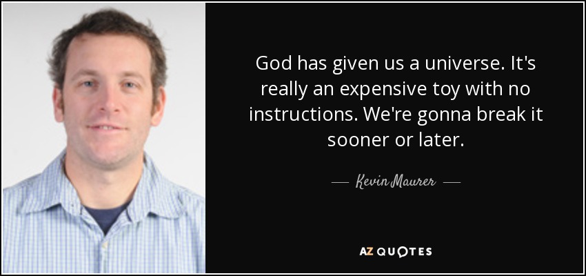 God has given us a universe. It's really an expensive toy with no instructions. We're gonna break it sooner or later.