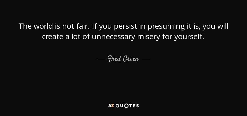 The world is not fair. If you persist in presuming it is, you will create a lot of unnecessary misery for yourself.