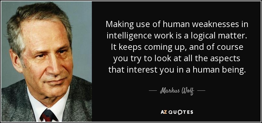Making use of human weaknesses in intelligence work is a logical matter. It keeps coming up, and of course you try to look at all the aspects that interest you in a human being.