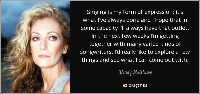 Singing is my form of expression; it's what I've always done and I hope that in some capacity I'll always have that outlet. In the next few weeks I'm getting together with many varied kinds of songwriters. I'd really like to explore a few things and see what I can come out with.