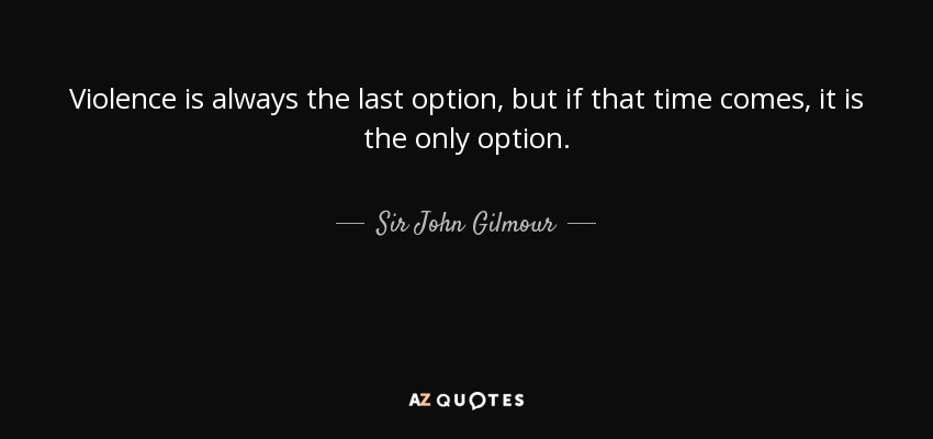 Violence is always the last option, but if that time comes, it is the only option.