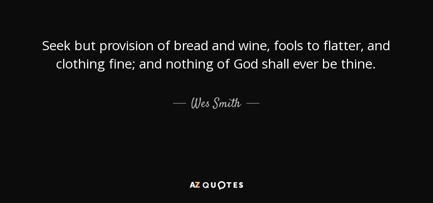 Seek but provision of bread and wine, fools to flatter, and clothing fine; and nothing of God shall ever be thine.