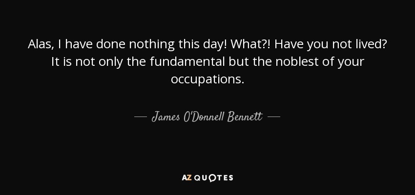Alas, I have done nothing this day! What?! Have you not lived? It is not only the fundamental but the noblest of your occupations.
