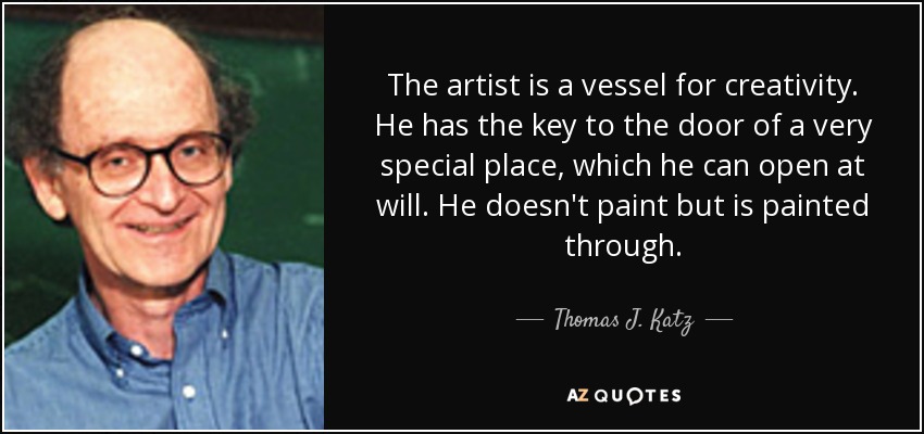 The artist is a vessel for creativity. He has the key to the door of a very special place, which he can open at will. He doesn't paint but is painted through.