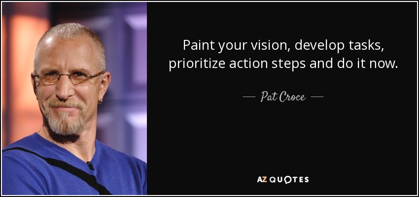 Paint your vision, develop tasks, prioritize action steps and do it now.