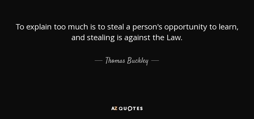To explain too much is to steal a person's opportunity to learn, and stealing is against the Law.