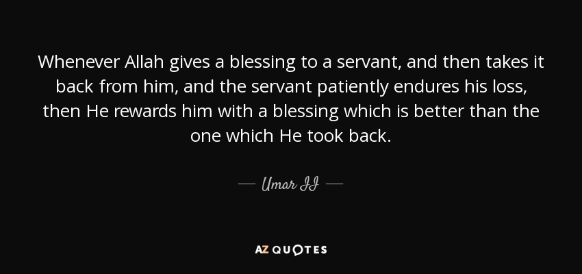 Whenever Allah gives a blessing to a servant, and then takes it back from him, and the servant patiently endures his loss, then He rewards him with a blessing which is better than the one which He took back.