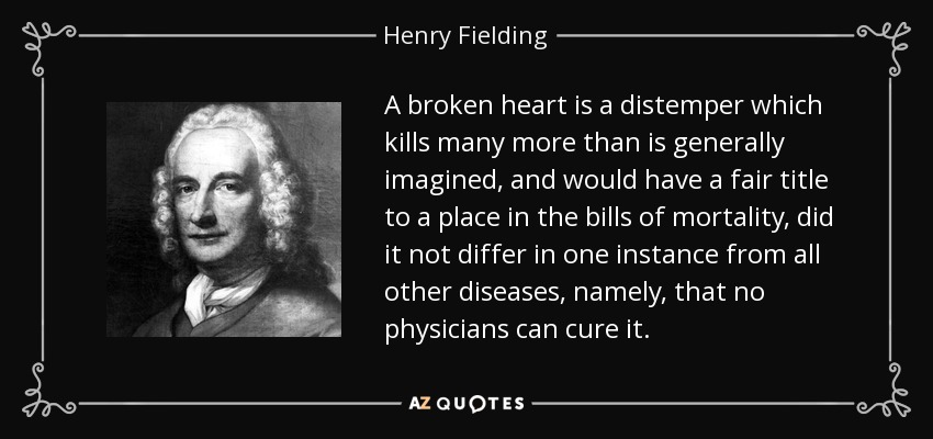 A broken heart is a distemper which kills many more than is generally imagined, and would have a fair title to a place in the bills of mortality, did it not differ in one instance from all other diseases, namely, that no physicians can cure it.