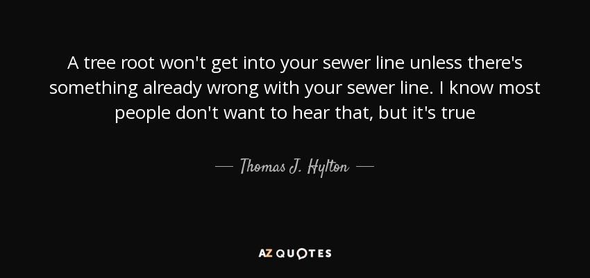 A tree root won't get into your sewer line unless there's something already wrong with your sewer line. I know most people don't want to hear that, but it's true