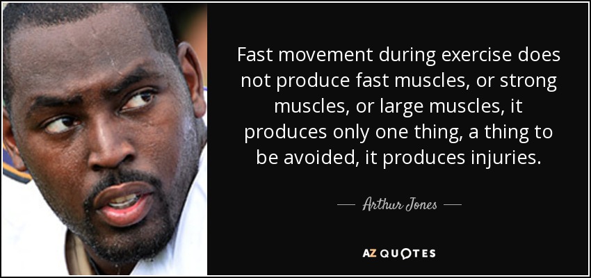 Fast movement during exercise does not produce fast muscles, or strong muscles, or large muscles, it produces only one thing, a thing to be avoided, it produces injuries.