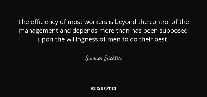 The efficiency of most workers is beyond the control of the management and depends more than has been supposed upon the willingness of men to do their best.