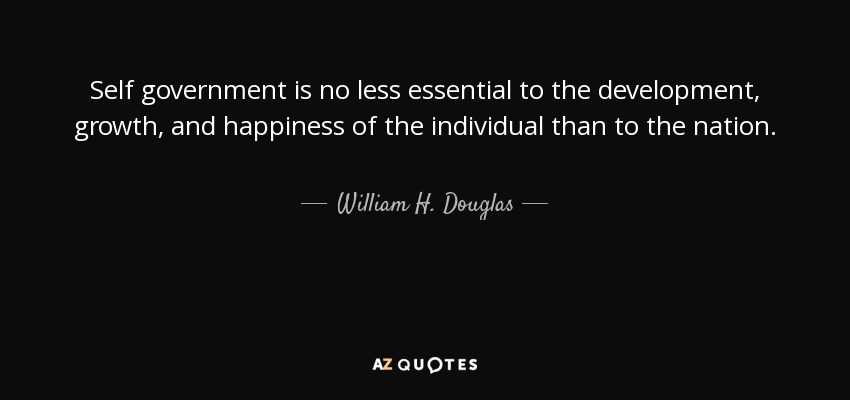 Self government is no less essential to the development, growth, and happiness of the individual than to the nation.