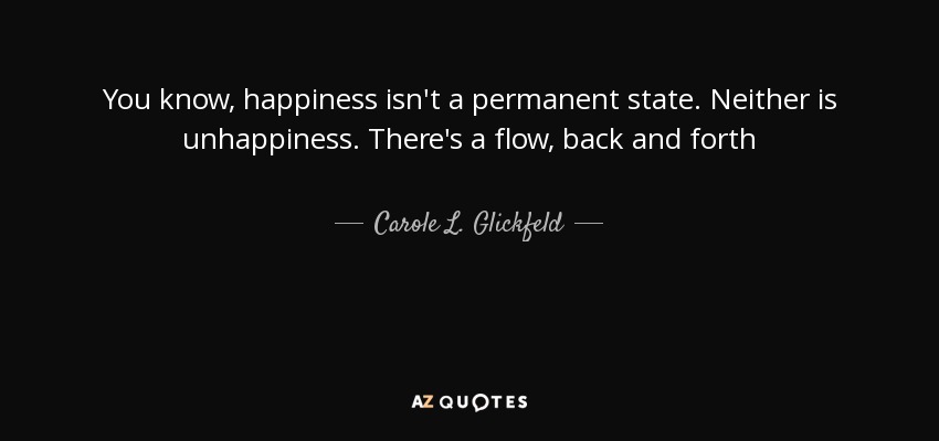 You know, happiness isn't a permanent state. Neither is unhappiness. There's a flow, back and forth