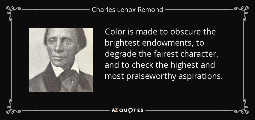 Color is made to obscure the brightest endowments, to degrade the fairest character, and to check the highest and most praiseworthy aspirations.