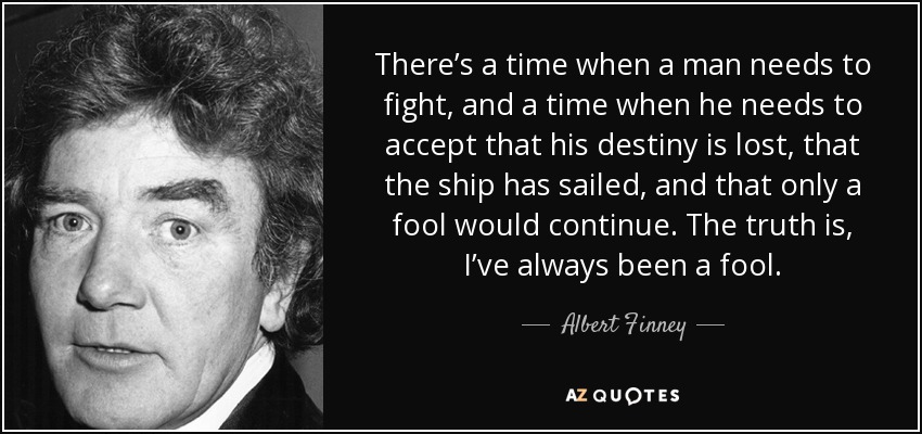 There’s a time when a man needs to fight, and a time when he needs to accept that his destiny is lost, that the ship has sailed, and that only a fool would continue. The truth is, I’ve always been a fool.