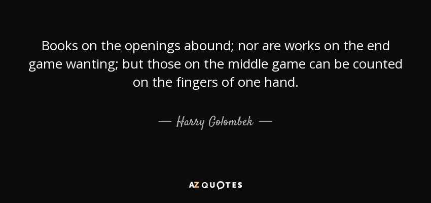 Books on the openings abound; nor are works on the end game wanting; but those on the middle game can be counted on the fingers of one hand.