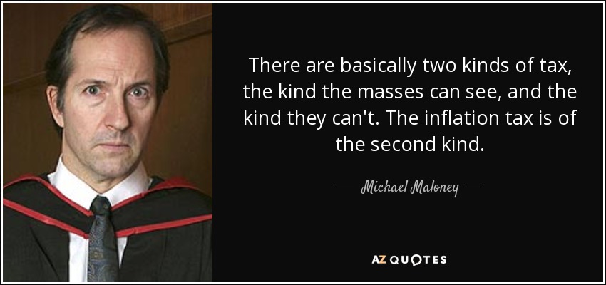 There are basically two kinds of tax, the kind the masses can see, and the kind they can't. The inflation tax is of the second kind.
