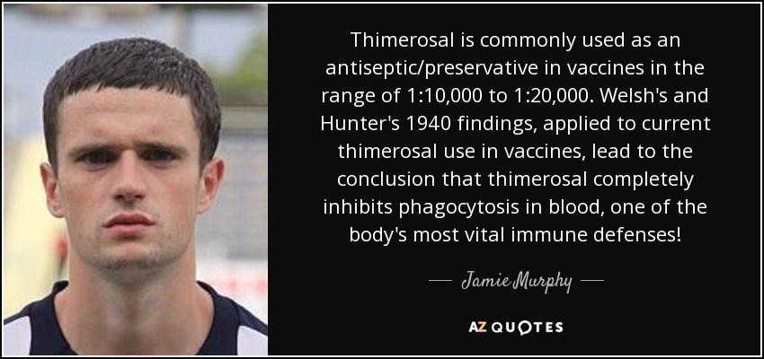 Thimerosal is commonly used as an antiseptic/preservative in vaccines in the range of 1:10,000 to 1:20,000. Welsh's and Hunter's 1940 findings, applied to current thimerosal use in vaccines, lead to the conclusion that thimerosal completely inhibits phagocytosis in blood, one of the body's most vital immune defenses!