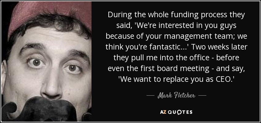 During the whole funding process they said, 'We're interested in you guys because of your management team; we think you're fantastic...' Two weeks later they pull me into the office - before even the first board meeting - and say, 'We want to replace you as CEO.'