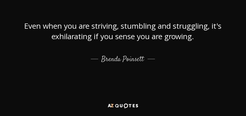 Even when you are striving, stumbling and struggling, it's exhilarating if you sense you are growing.