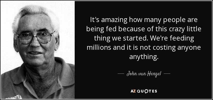 It's amazing how many people are being fed because of this crazy little thing we started. We're feeding millions and it is not costing anyone anything.