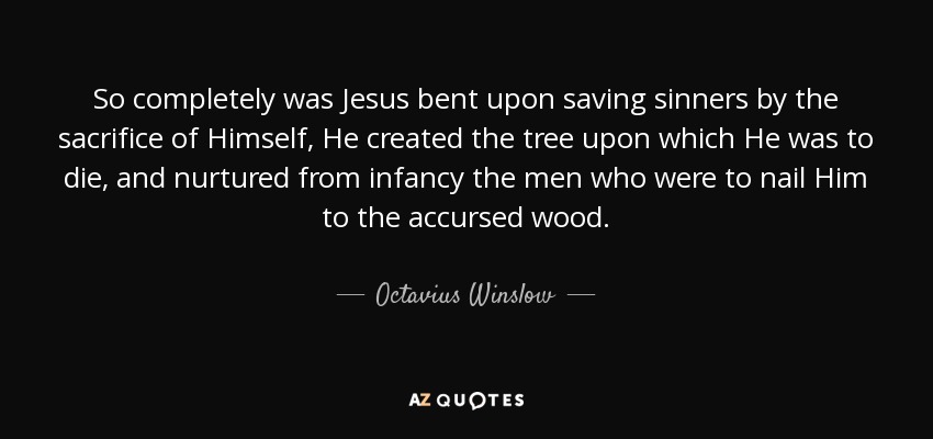 So completely was Jesus bent upon saving sinners by the sacrifice of Himself, He created the tree upon which He was to die, and nurtured from infancy the men who were to nail Him to the accursed wood.