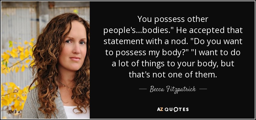 You possess other people's...bodies." He accepted that statement with a nod. "Do you want to possess my body?" "I want to do a lot of things to your body, but that's not one of them.