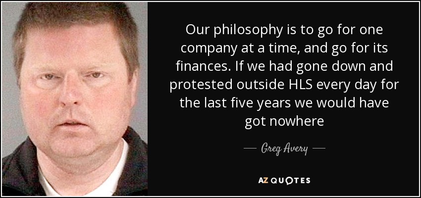 Our philosophy is to go for one company at a time, and go for its finances. If we had gone down and protested outside HLS every day for the last five years we would have got nowhere