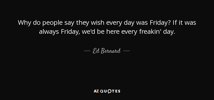 Why do people say they wish every day was Friday? If it was always Friday, we'd be here every freakin' day.