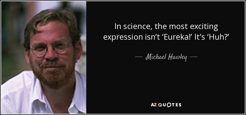 In science, the most exciting expression isn’t ‘Eureka!’ It’s ‘Huh?’