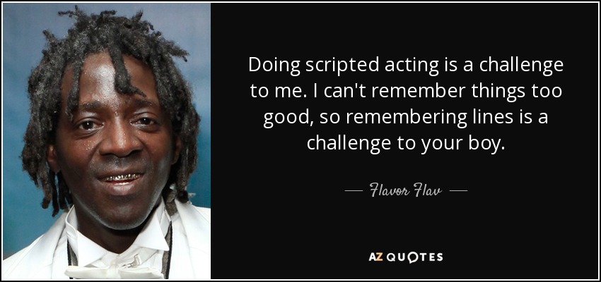 Doing scripted acting is a challenge to me. I can't remember things too good, so remembering lines is a challenge to your boy.