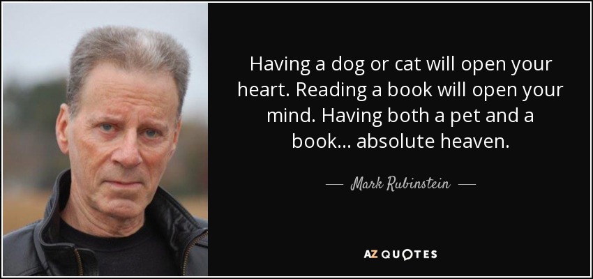 Having a dog or cat will open your heart. Reading a book will open your mind. Having both a pet and a book... absolute heaven.