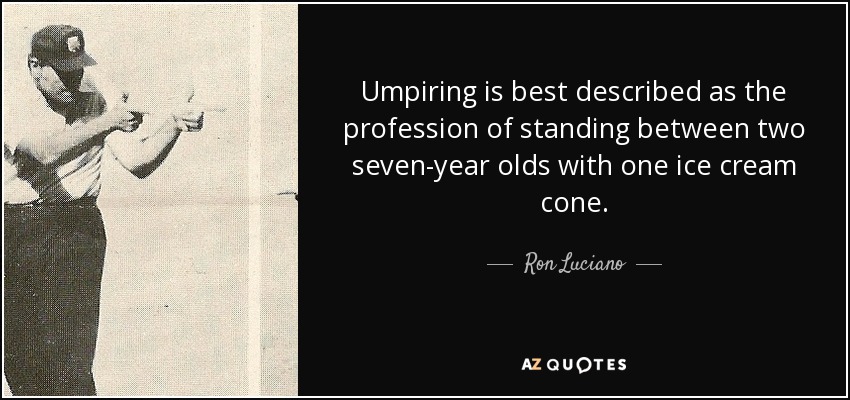 Umpiring is best described as the profession of standing between two seven-year olds with one ice cream cone.